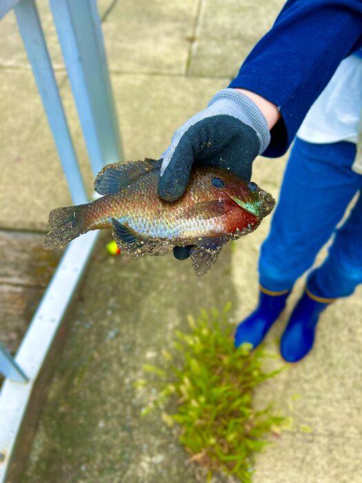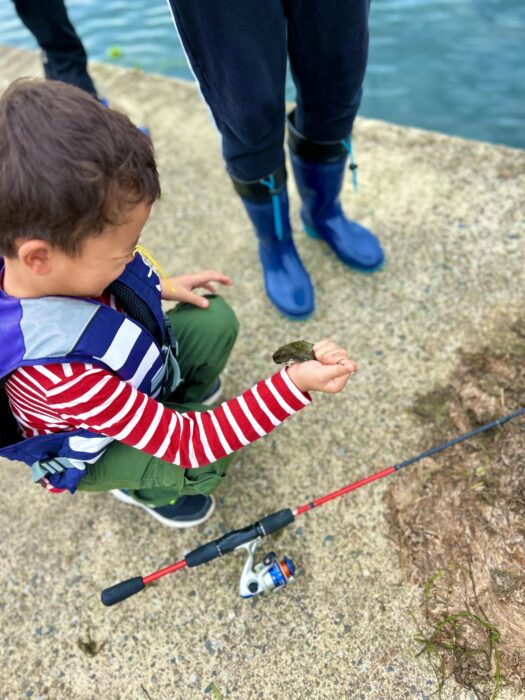 本日は、台風23号の影響による雨で、魚達の様子が下見の時点と変わっており、用意してきた仕掛けで、はじめ釣れませんでした。その後、色々試行錯誤する中で、本日の魚にアジャストする事ができ、その後はポンポンポンと釣れ続けました。誰も諦めずに色々と工夫した結果です。魚をはじめ、自然相手の遊びは一筋縄ではいかないのが当前ですね!そこが奥深く、楽しいところです。子ども達にとっては、予想外の事態でも、どうやって楽しむのか考える機会となっています。