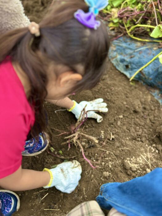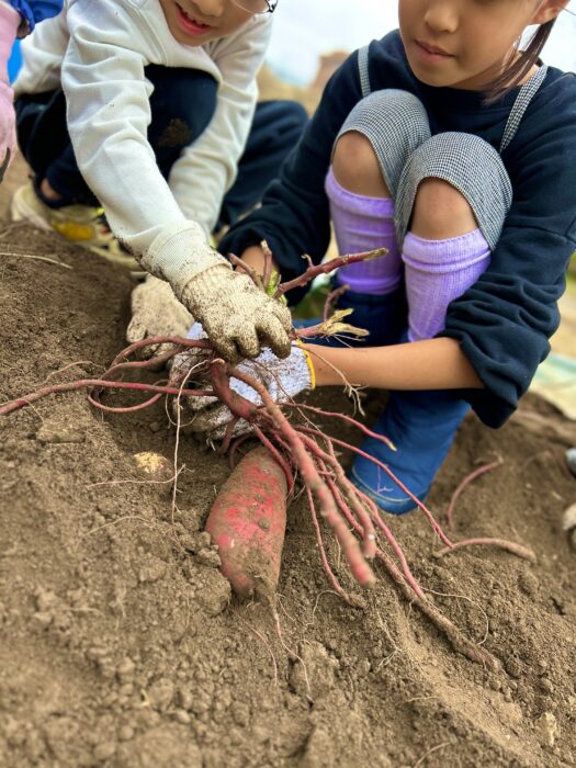 2さつま芋ほり(大口町農家さんのご協力です。ありがとうございました。本日掘り出した芋は、2週間干して(甘みが増してから)、11月8日(土)そうりプレーパークイベントにて焼き芋にして食べます。