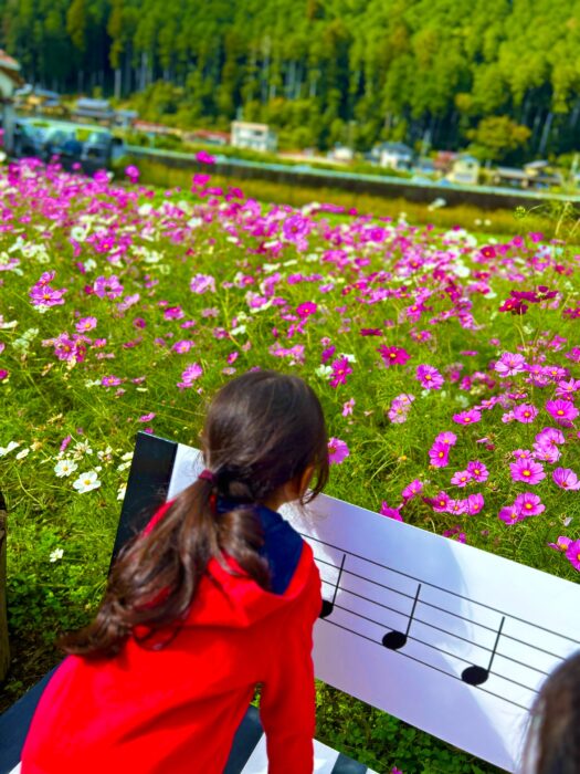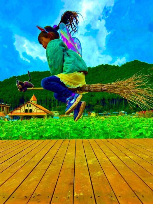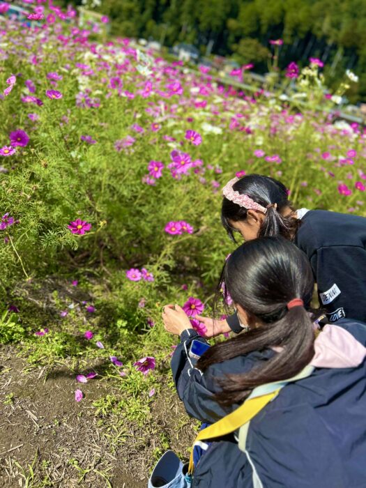 ・ひまわりの里にて>コスモス畑でプチコスプレ撮影会、空飛ぶ魔女っ子撮影会、花の迷路巡り、地域文化祭りに参加(消防士の制服を着て消防車で撮影会、消防車に乗ってみる、消火器を使う体験、消防車バルーンとお菓子をもらう)、近くの河原にて変わった形の石を探そう(持ち帰ってペイント工作)。