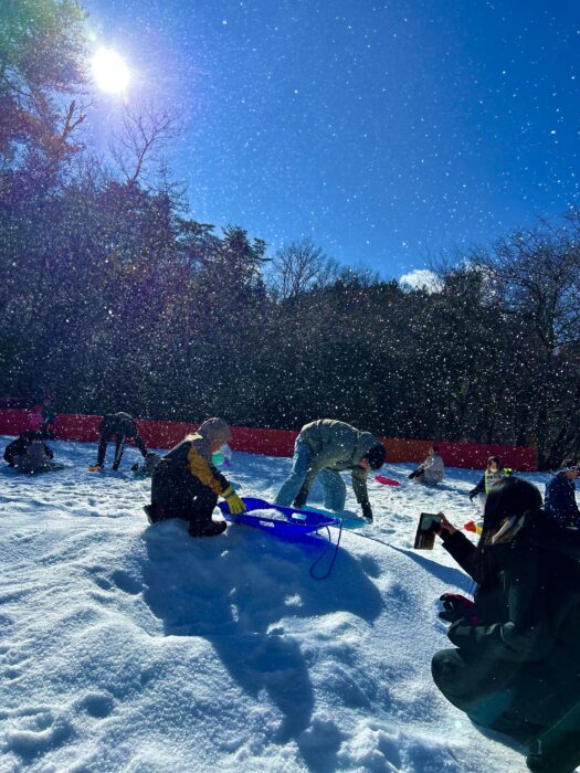 豊田市旭高原でソリ滑りを行いました。はじめに、旭高原職員の方からソリ滑りや雪遊びのルールを教えてもらいました。真剣に聞き入り、分からないこところについては、積極的に質問をする子達もいました。広い雪の斜面を前にすると、子ども達は「早くやりたい!」と期待いっぱいの様子でした。最初は少し緊張していた子も、職員と一緒に滑る中で次第に笑顔が増え、何度も繰り返し挑戦する姿が見られました。