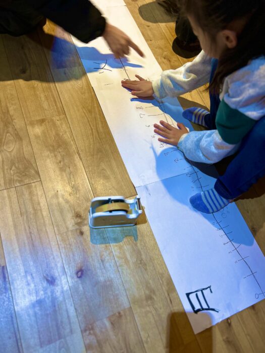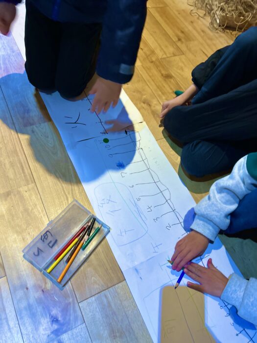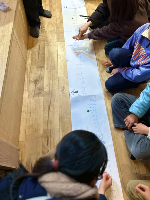 ●ものさし時計(24時間)を書いて、1週間(月曜日から日曜日まで)をつなげる。正午、午前と午後、昨日から今日にかけての自分の睡眠時間を目で見て数える)