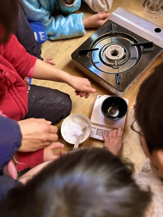 ▶天然の塩と市販の塩、砂糖等との味比べをして楽しみました。