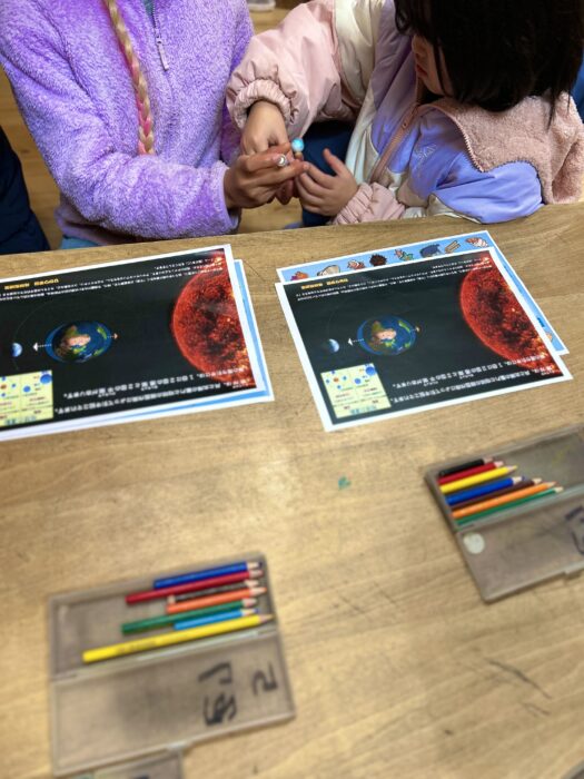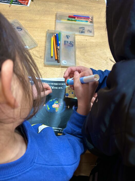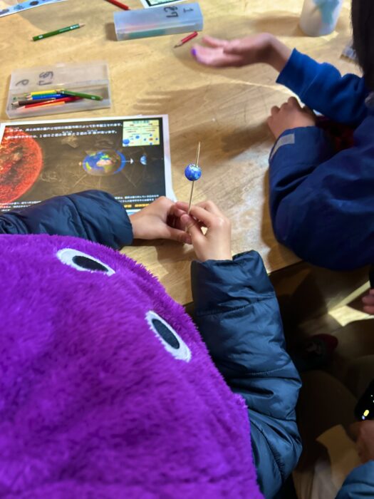 〇干潮とは、満潮とは(1日につき2回ずつ等)、地球の自転と公転(地球儀工作をして、左まわり(自転)させながら太陽のまわりを公転させてみる)、引力、漢字の楽々暗記練習(イメージフィックス法)