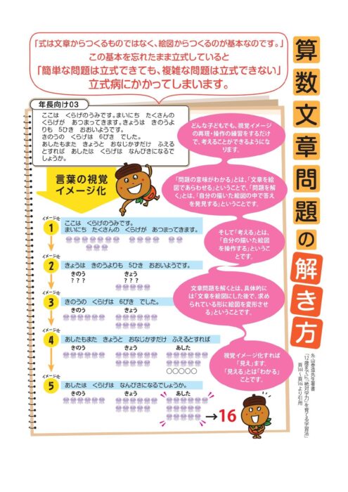 算数の文章問題は、お絵描き(言葉や文章を視覚イメージ化)しながら、楽しく練習しましょう。