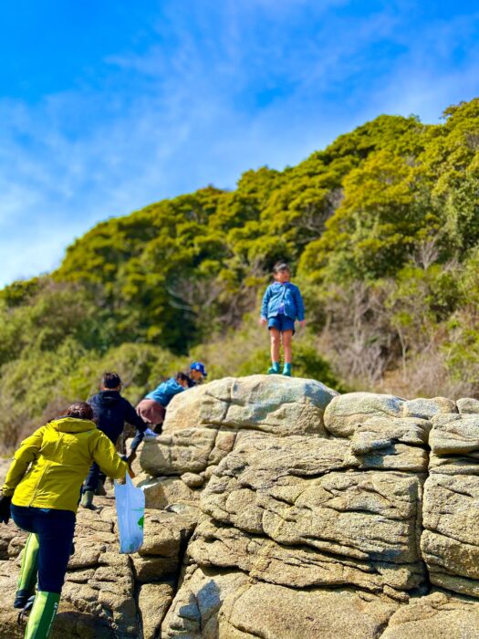 干潮時に現れる道を渡り、無人島へ上陸し、普段なかなか体験できない特別な環境の中で、散策と磯遊びを楽しみました。