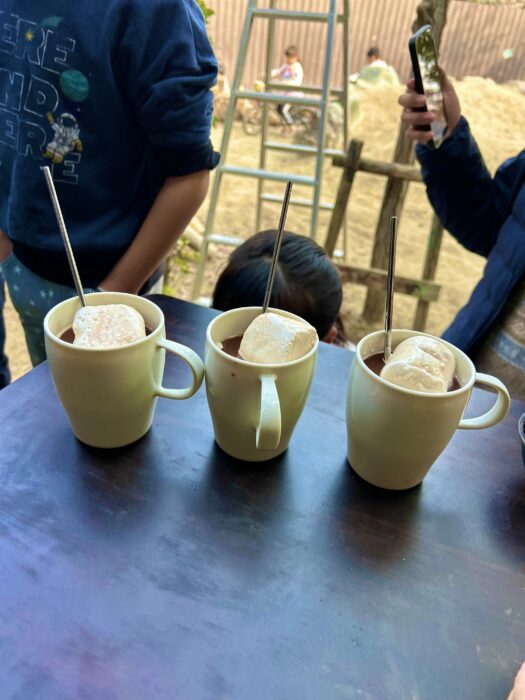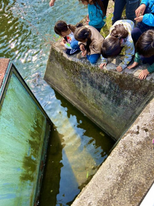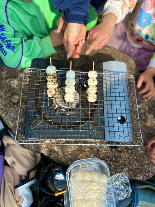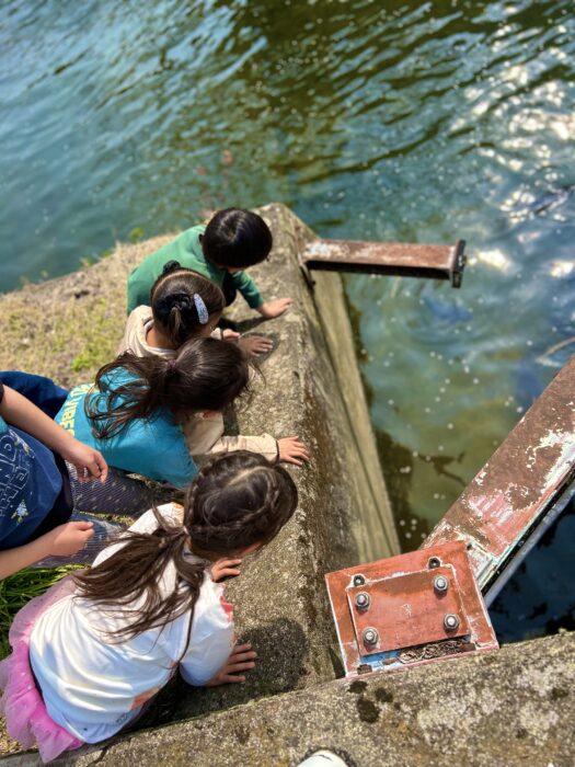 (川のコイへエサやり、お花見、みたらし団子を焼いて食べる、公園遊び)